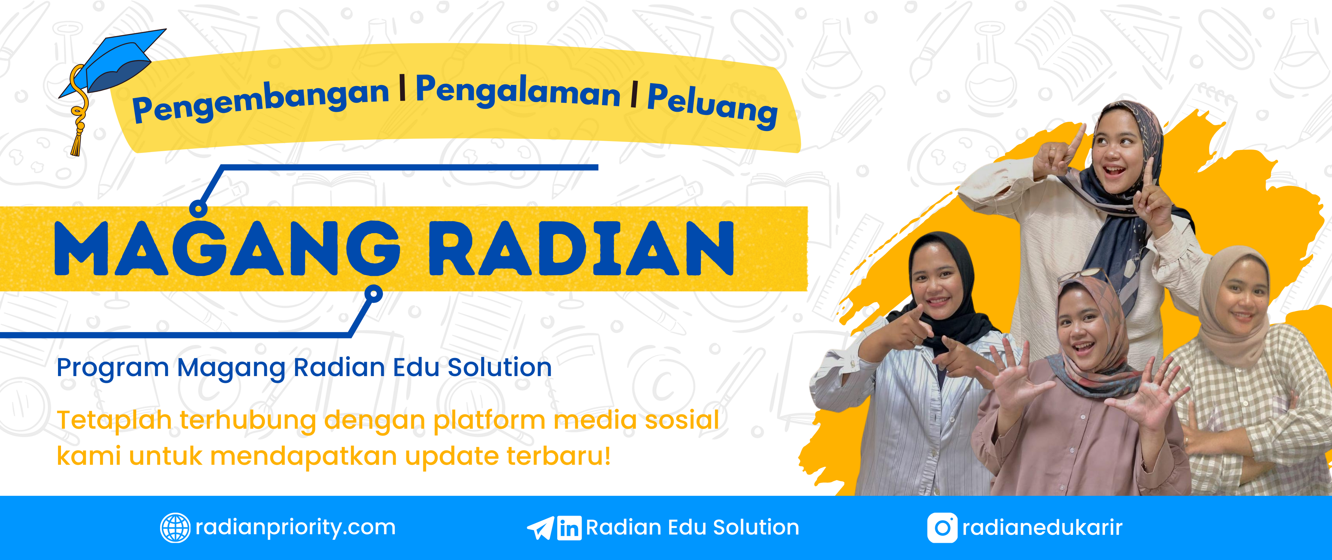 Di Radian, kami yakin bahwa setiap individu memiliki potensi besar yang menunggu untuk diwujudkan. Dalam lingkungan yang mendukung, program Internship kami tidak hanya bertujuan untuk memperluas wawasan, tetapi juga untuk mengembangkan diri secara pribadi dan profesional. Bergabunglah dengan kami dan temukan ruang untuk mengasah bakat, mengeksplorasi minat, dan menemukan semangat dalam mengejar impian. Kami percaya bahwa setiap langkah kecil dalam Radian Internship Program memiliki potensi besar untuk menciptakan perubahan positif, tidak hanya bagi diri sendiri, tetapi juga bagi dunia di sekitarnya. Mari bersama-sama menciptakan masa depan yang berarti. Ayo, jadilah bagian dari perjalanan inspiratif ini, dan bersama-sama kita akan meraih kesuksesan.
